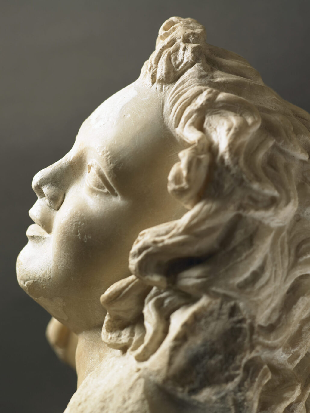 Sculpture en marbre, enfant s’adonnant à la danse ou à la musique ©R. Gindroz