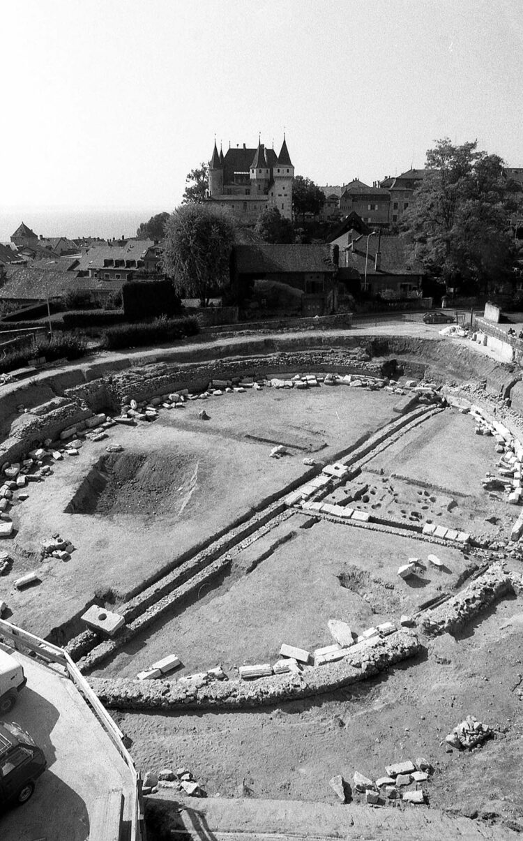 The Roman Museum of Nyon’s exhibition L’Amphithéâtre s’affiche is on show in the town of Nyon from November 10, 2024 to January 21, 2025. It showcases the work of archaeologists through photographs taken during excavations of the amphitheatre in 1996.