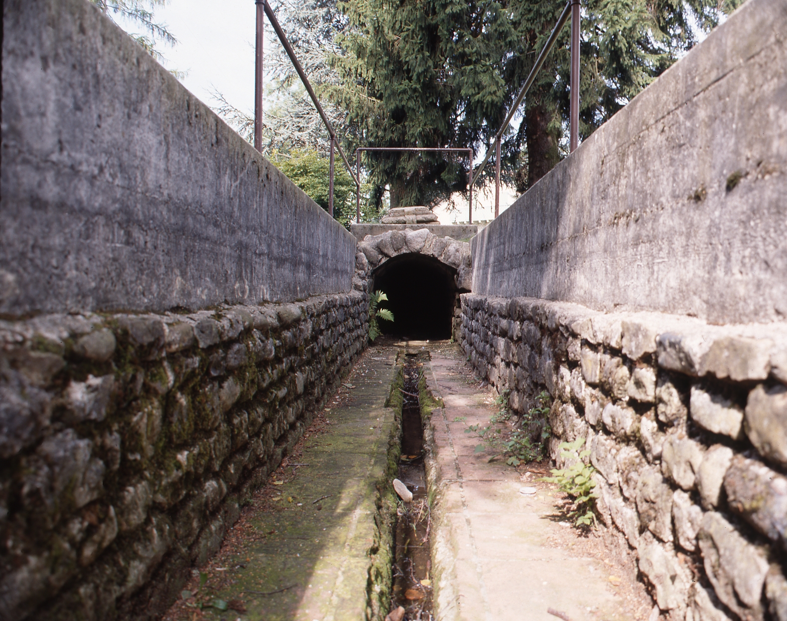 Durant son parcours, la pente était précisément calculée; suffisamment forte pour permettre l’écoulement, mais pas trop, afin d’éviter une pression trop importante qui fragiliserait la construction. On perd la trace de l’aqueduc après l’actuelle route de St-Cergue, mais il devait arriver en ville dans un château d’eau.